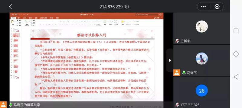 “文以行为本,在先诚其中”,期末考试周即将来临。为严肃考风、考纪,树立良好学风为,营造浓厚的期末复习备考氛围,使同学们严格遵守考试规章制度,坚持实事求是的原则,2020年12月19日,做爱动画 开展了诚信考试主题教育活动。参加本次活动的有团委书记张亚昂老师以及全体大一学生。其中201班和204班线下进行,202班线上进行。
