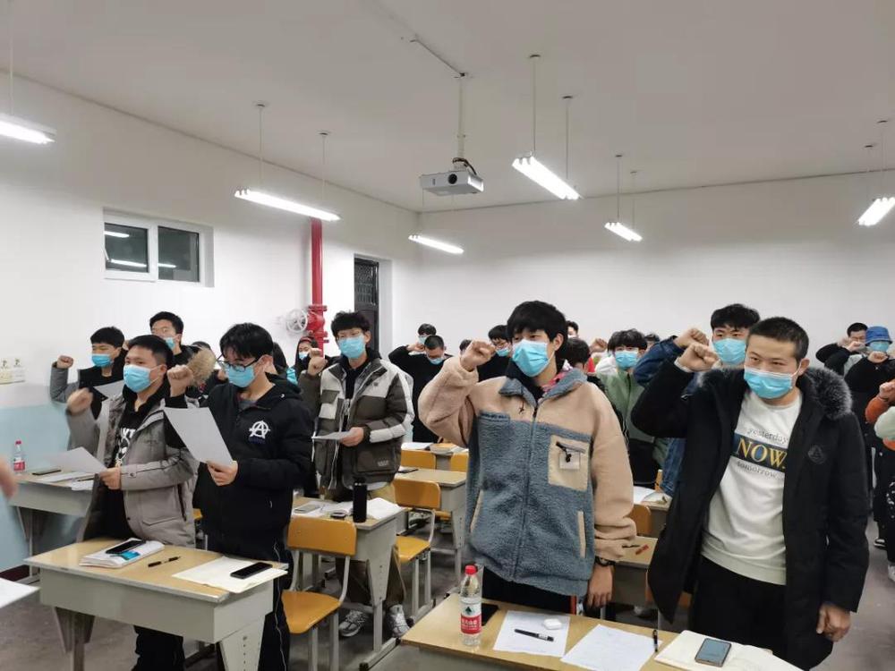 随后,同学们起立,共同宣誓。活动第三项,辅导员张亚昂老师进行总结,分数诚可贵,诚信价更高,诚信是对人的基本要求,也是我们大学生必备的思想道德品质。考试不仅是一次学习成果的检阅,更是一场道德与诚信的考验。做一个诚信之人,是每个学生的责任与义务,也是做人最基本的准则。同学们应该严格要求自己,谨记考试纪律,端正考试态度,以饱满的热情迎接期末考试。