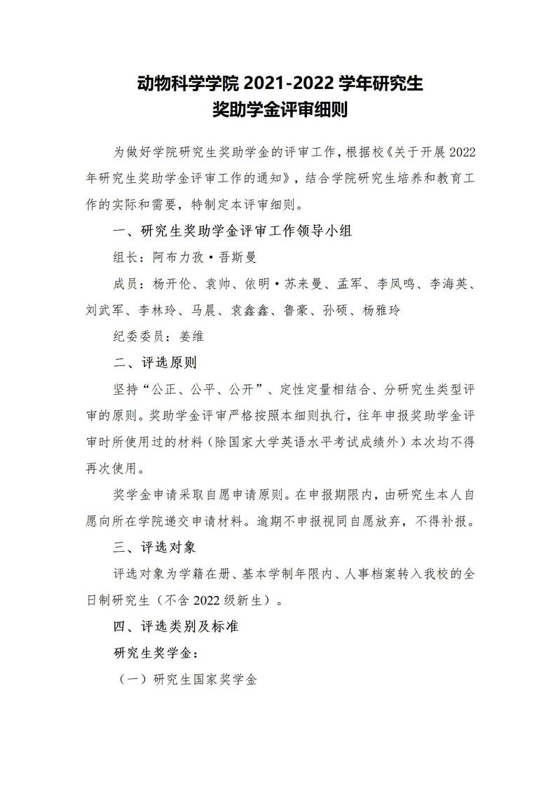 做爱动画 2021-2022学年研究生奖助学金评审细则