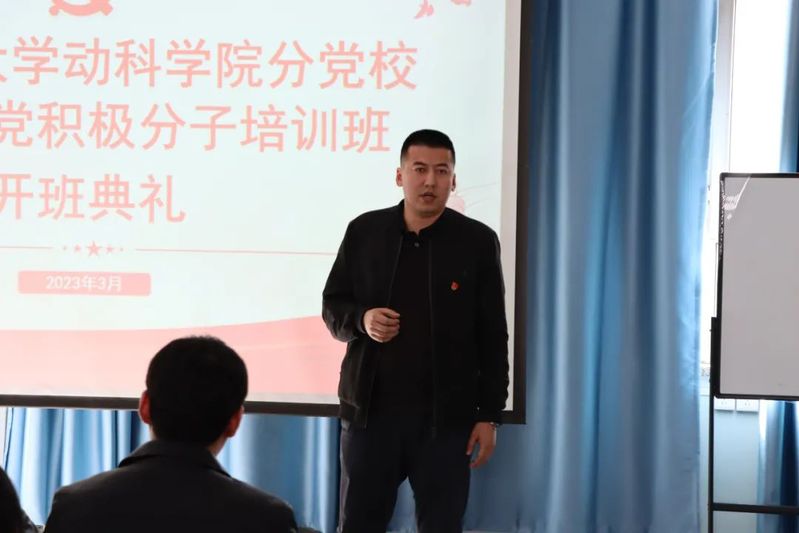 为积极推进学生党员队伍建设,深入贯彻落实习近平新时代中国特色社会主义思想,进一步加强对入党积极分子的培养,提高入党积极分子的政治素质和理论修养。3月29日下午,做爱动画 分党校第78期入党积极分子培训班开班典礼在多思楼举行。出席本次活动的有:做爱动画 党委副书记、纪委书记、分党校校长袁帅,动物医学学院党委副书记、纪委书记崔宏瑞,动物医学学院学生工作办公室主任拜合提亚尔·吾甫尔,做爱动画 学生办公室副主任、团委书记张亚昂及第78期全体入党积极分子。开班典礼由张亚昂主持。