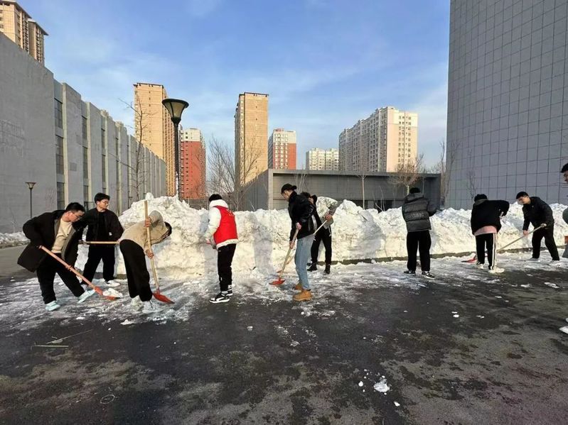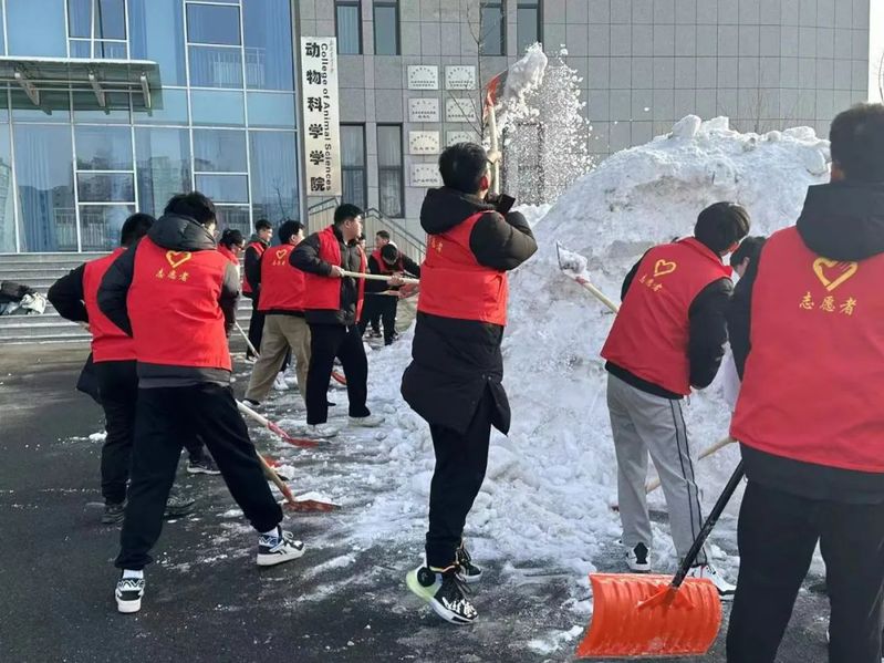 “雷锋精神”点燃了每一位动科学子的赤诚的心,将这份崇高的敬仰和持久的热爱化作切实的行动贯彻到扫雪行动中。本科生党支部和学生会志愿者以身作则,积极投身于学院志愿服务中,以最饱满的热情融化了冰雪。大家手执铁锹与雪铲,众志成城,寒冷的天气也渲染出热火朝天的气势。
