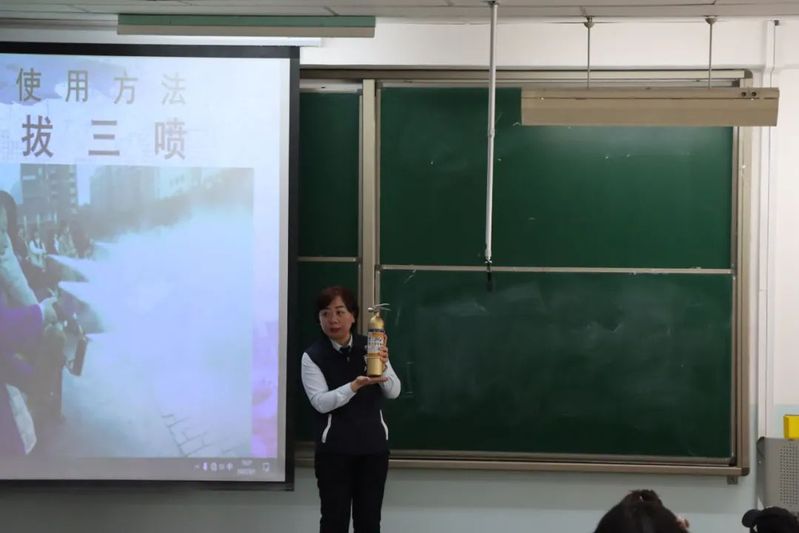 会上,王媛教官以图文并茂的形式,结合新闻报道、事故分析,介绍了当前防震减灾形势,对地震逃生技巧进行了详细讲解。王媛教官还结合生活、工作中容易忽视的安全隐患,详细讲解了发生火灾后的自防、自救、逃生技能,并按种类、功能、用途介绍了不同的灭火器材及其使用方法,向师生们介绍了烟雾报警器的作用、防烟防毒面具等的使用方法。
