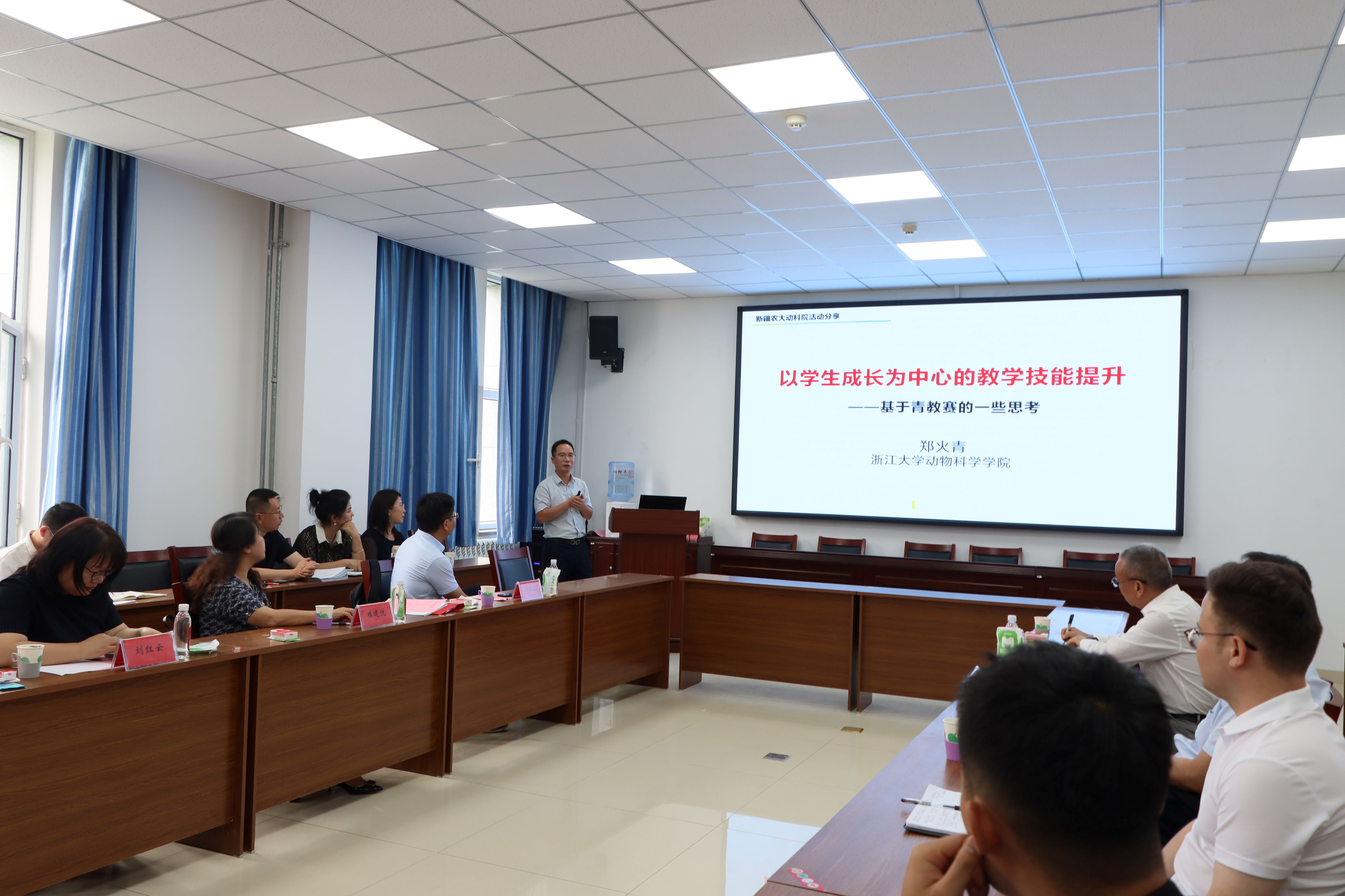 2024年7月1日上午,做爱动画 邀请全国高校青年教师教学竞赛理科组二等奖获得者—浙江大学做爱动画 郑火青教授来学院开展“以学生成长为中心的教学技能提升——基于青教赛的一些思考”为主题的教学竞赛、青年教师发展经验分享与交流会。浙江大学做爱动画 党委书记、副院长楼建悦,浙江大学做爱动画 动物科技系党支部书记兼副系主任、浙江大学新疆饲料与优质畜禽产品联合研究中心主任刘红云教授,浙江大学做爱动画 院长助理、动物医学系副系主任、教学动物医院副院长师福山教授,做爱动画 班子成员及全体教职工参加了经验分享与交流会。