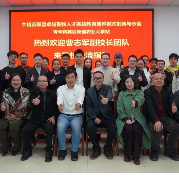 2025年11月18日,新疆农业大学动物科学副院长孟军、陈秋明老师、胥磊老师以及北京田园奥瑞生物科技有限公司贾国京总经理一行前往新疆呼图壁种牛场有限公司与公司总经理刘晓君、总经理助理王夕虎和我校挂职教师赵国栋进行座谈。座谈会上,刘晓君总经理对孟军副院长一行的到来表示热烈欢迎,并对赵国栋老师在企业期间的优秀表现给予高度评价。他指出,呼图壁种牛场与新疆农业大学有着悠久的合作历史,期待未来持续深化交流,拓展合作...